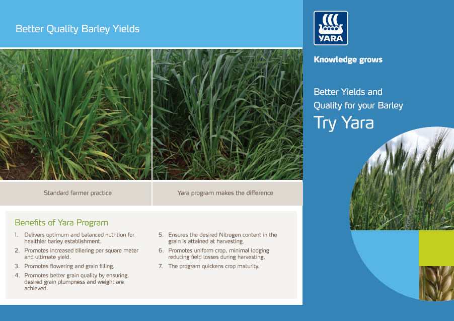 Yara's solid fertiliser and foliar programmes for barley are based around YaraBela and YaraMila solid fertilisers and the YaraVita foliar micronutrients.